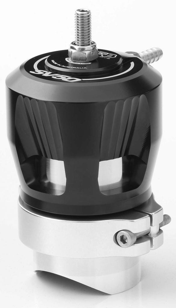 The SV50’s v-band clamp is machined from billet, but that’s not the unique feature. Competitors’ one-piece designs rely on bending the clamp material to open up the clamp, with difficulty. Repeated bending will also cause the material to fracture. GFB’s 2-piece hinged design solves this problem by opening wide for easy installation and lasting longer than other designs.