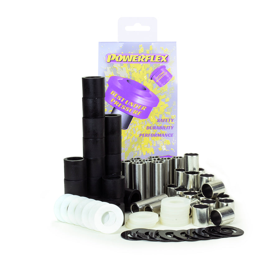 TVR T350 (2002 - 2006) Rear Upper/Lower Wishbone Bush - PF79-102R Made using our range-topping Black 95A durometer polyurethane, these new bushes feature self-lubricating, inner PTFE-lined DU bearings with stainless-steel sleeves. This combination of PU and DU bearings delivers smooth articulation and excellent wear, with the compliance of PU and the high performance and precision of a metal bearing. - NOTE: Price is for CAR KIT, NOT per bush… Powerflex price their bushes individually, but we have combined the quantities to make it simple!